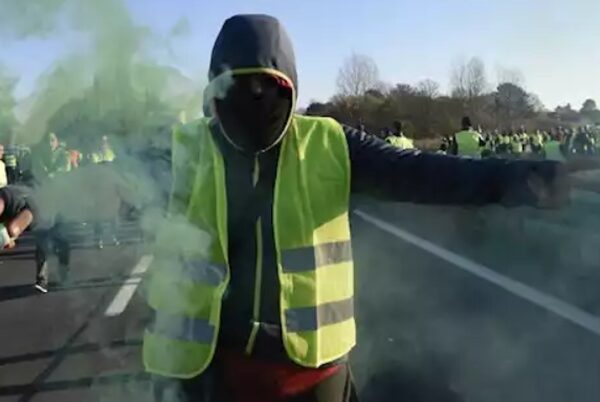 S’ils portaient la plupart le signe de ralliement des manifestants du jour, ils étaient pour la majorité cagoulés et porteurs de barres de fer.
