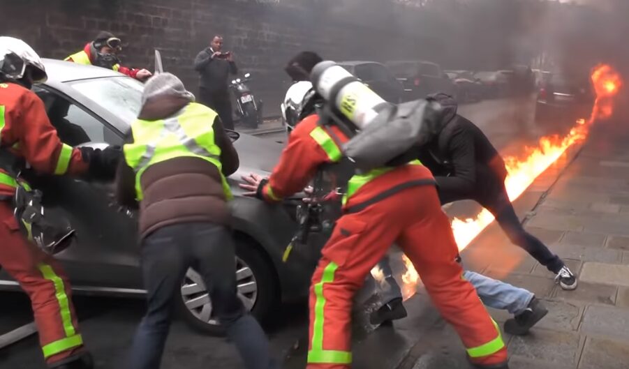Lors des manifestations des gilets jaunes à Paris, un groupe de manifestant est venu en aide aux pompiers pour sauver un véhicule des flammes.
