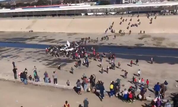 The migrants broke through the fence and were repelled with pepper spray smoke pellets. #MigrantCaravan pic.twitter.com/pC8dDFRfOy